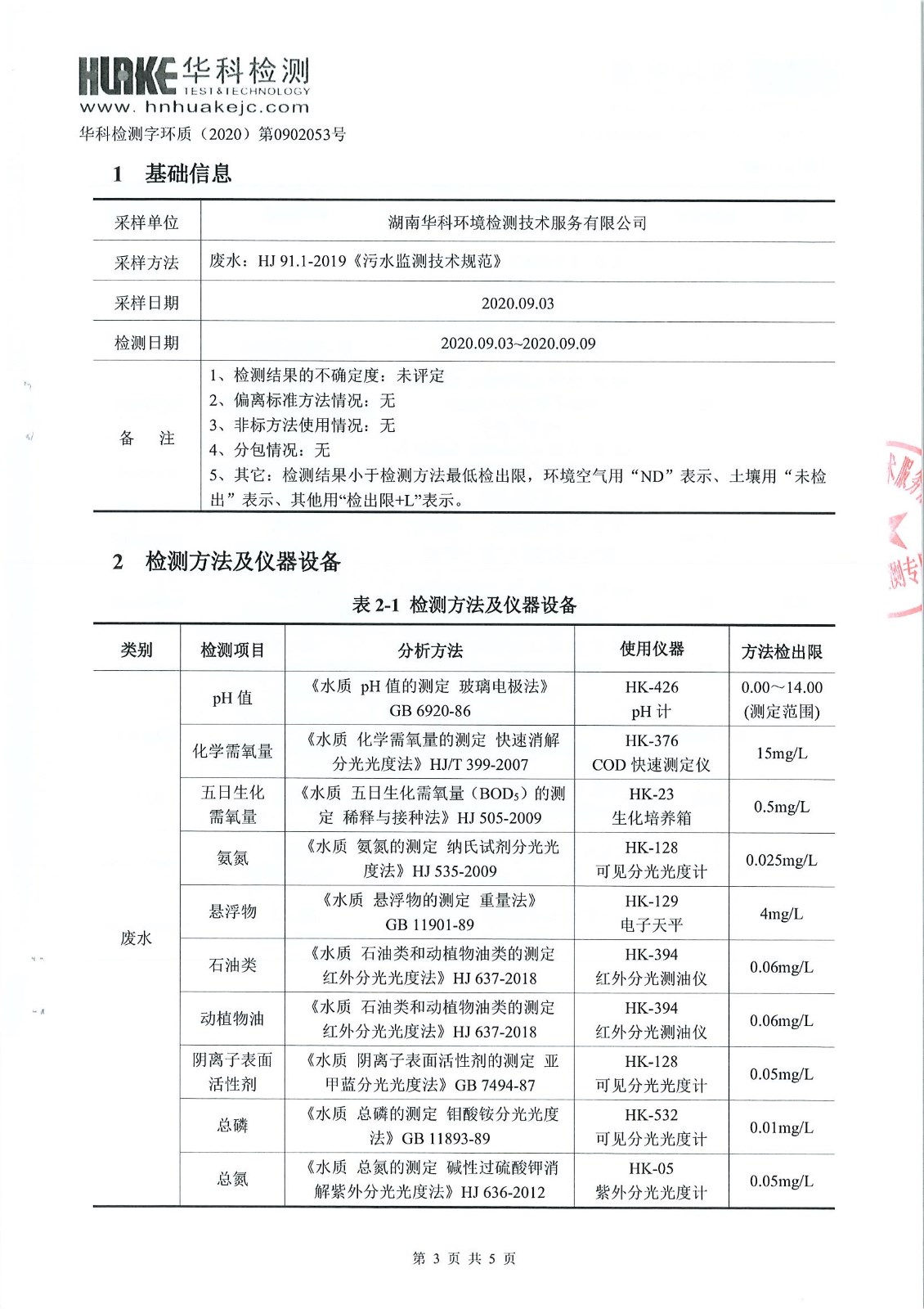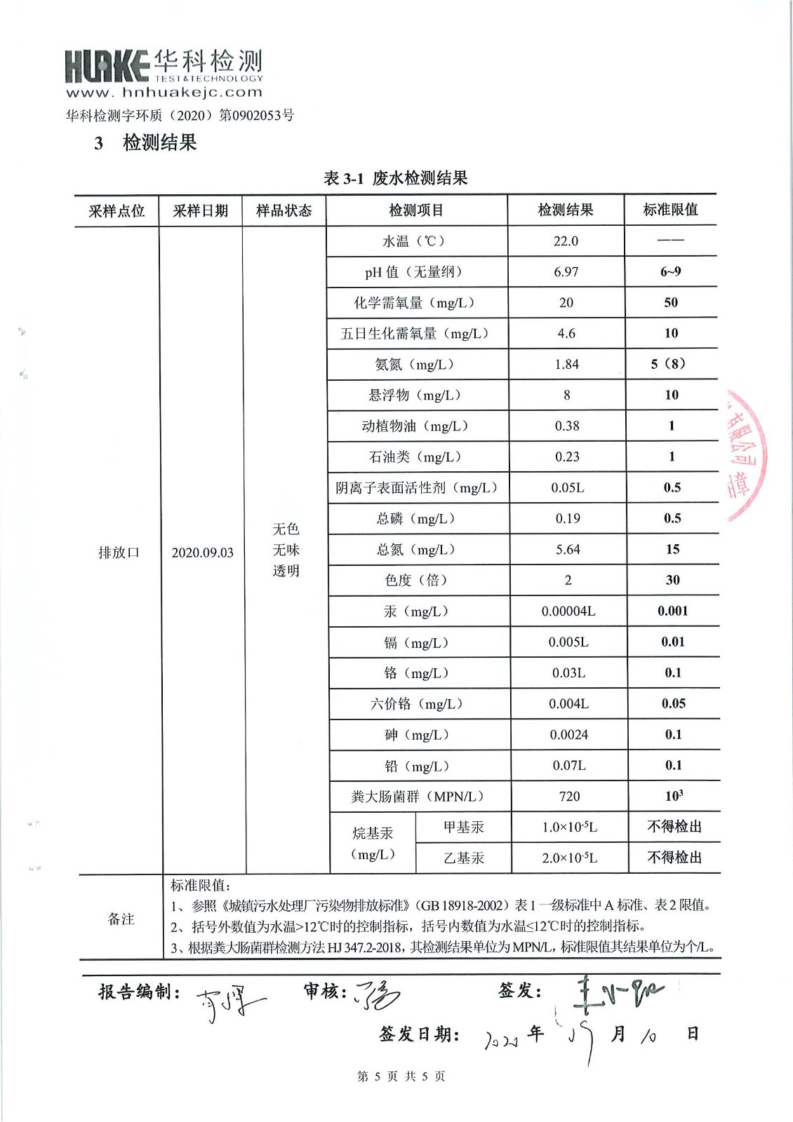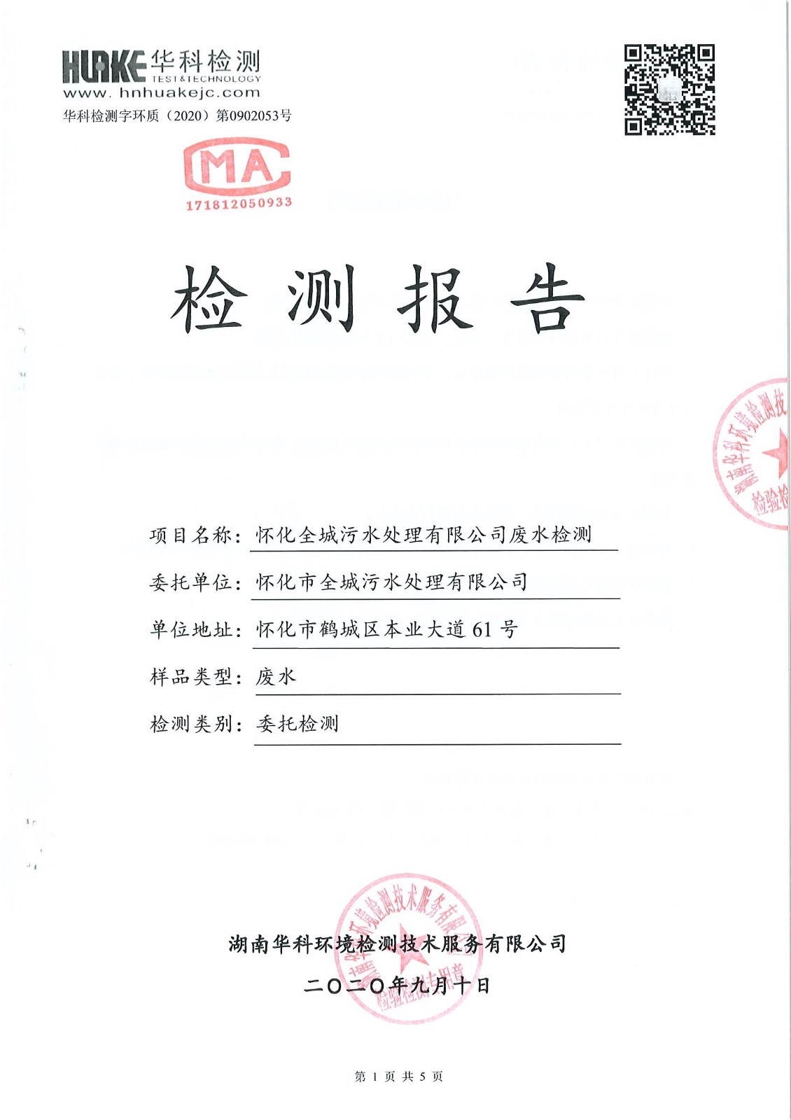 华科检测 2020年9月污水检测报告
